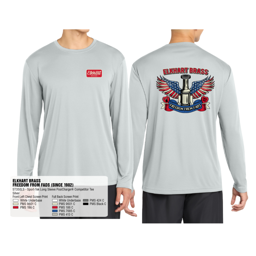 Limited Edition "Freedom from Fads" XD American Flag - Elkhart Brass collaboration. Show off your love for this sweet collaboration with a lightweight Sport-Tek Long Sleeve that is the perfect for everyday wear.